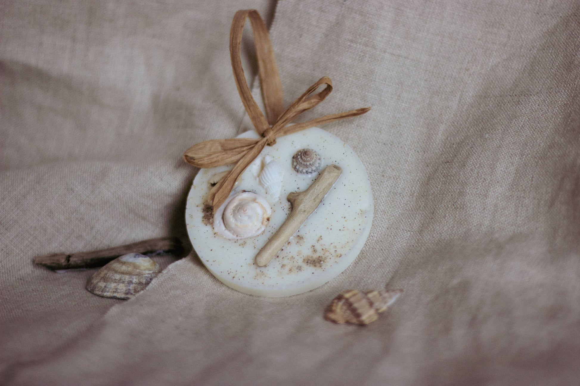 These beach themed scented wax melt decorations are perfect ornaments and act as a lovely air freshener in any room of the home, hung on door handles, in wardrobes or in windows! They can also be broken up and used as a wax melt if desired. They have been decorated with gorgeous hand picked shells, driftwood and seaside finds from the North East of England!