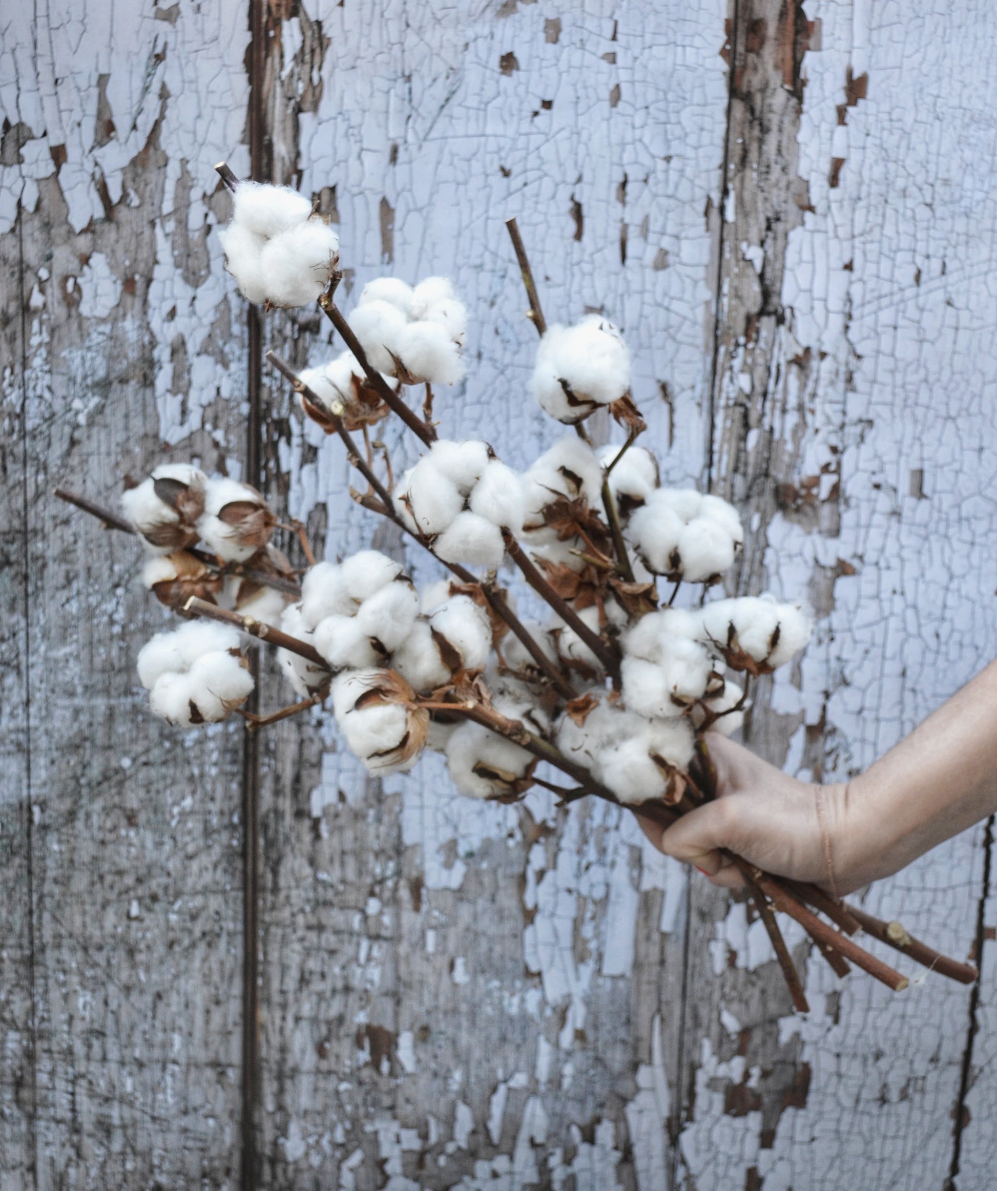 Stems of Cotton are a long lasting dried flower, when kept out of direct sun and in a dry environment.