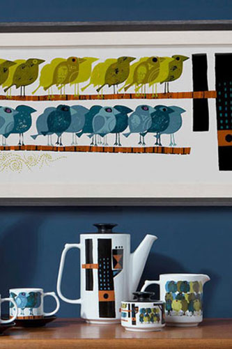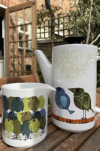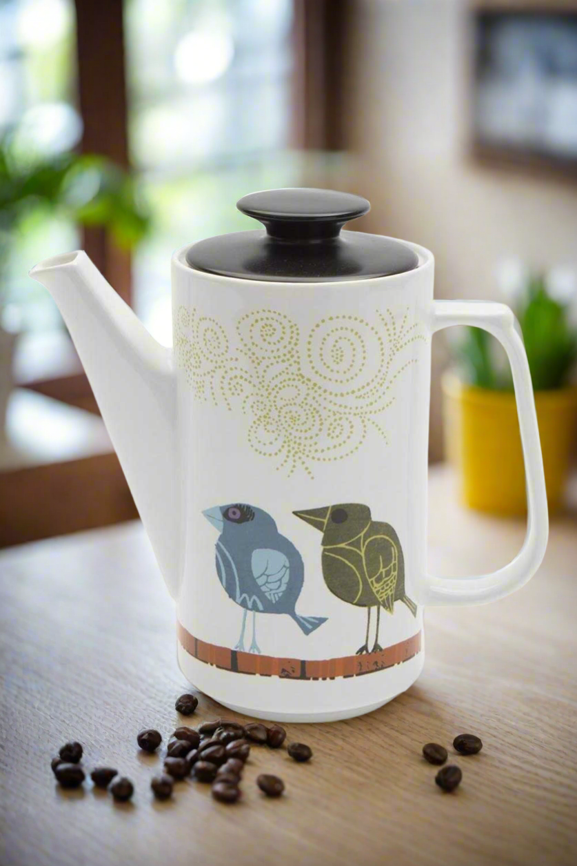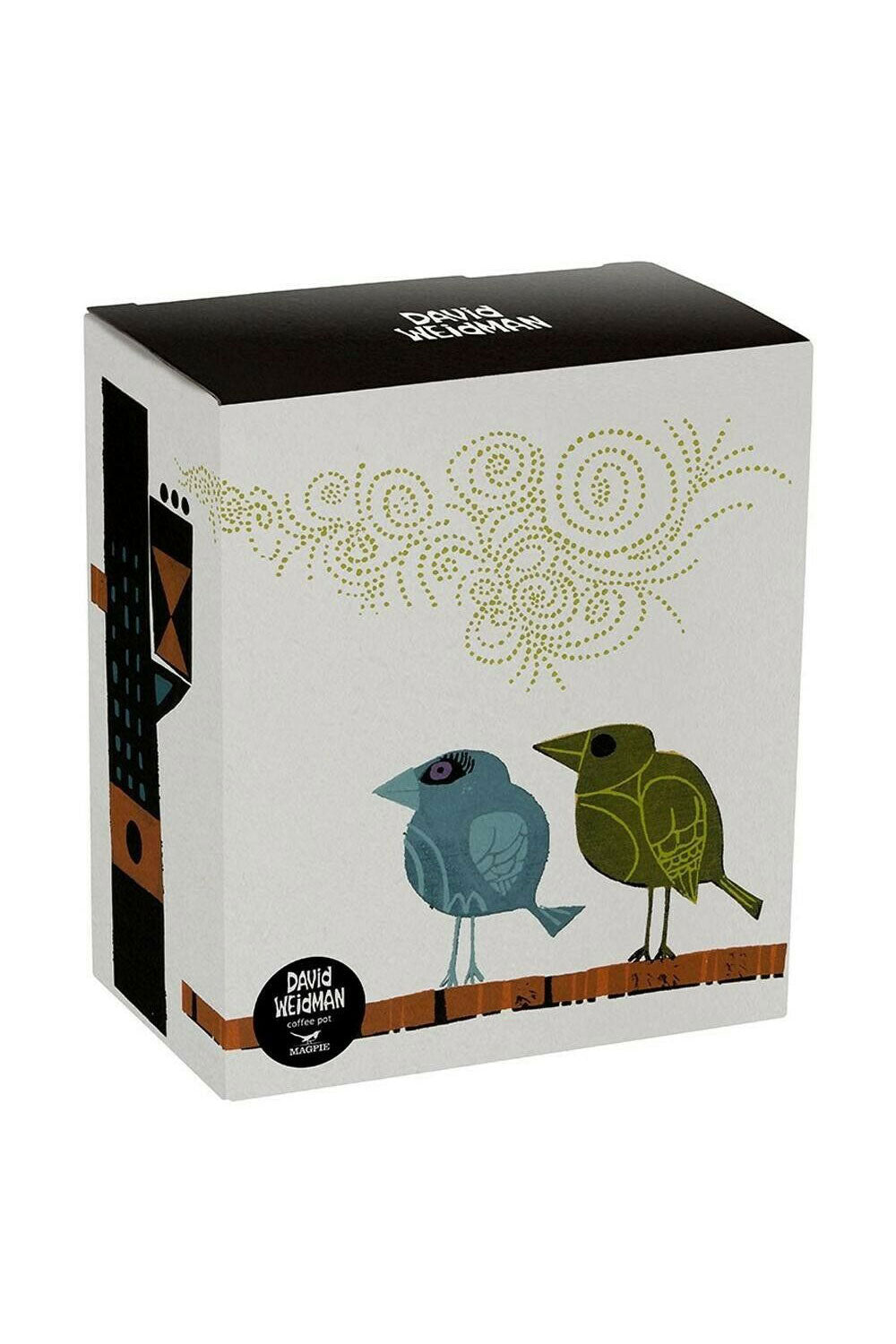 This unique coffee pot features David Weidman's 1963 "Family of Birds" work and is made from vegan fine china. With its clean colour scheme and emblematic bird design, it is an image that not only beautifully encapsulates David Weidman's work, but mid-century illustration in general.