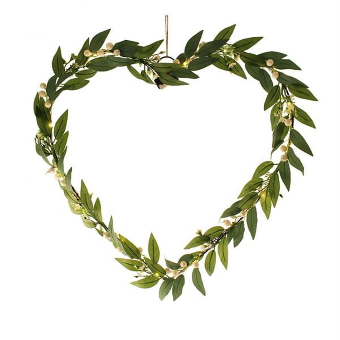 Faux white berry vine Led heart wreath