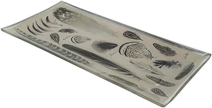 Perfect for storing jewelry, keys, or other small items, the Gisela Graham glass feather trinket tray is as practical as it is beautiful. Its compact size makes it ideal for use on a bedside table, vanity, or entryway table, and its neutral color scheme means it will complement any decor style.