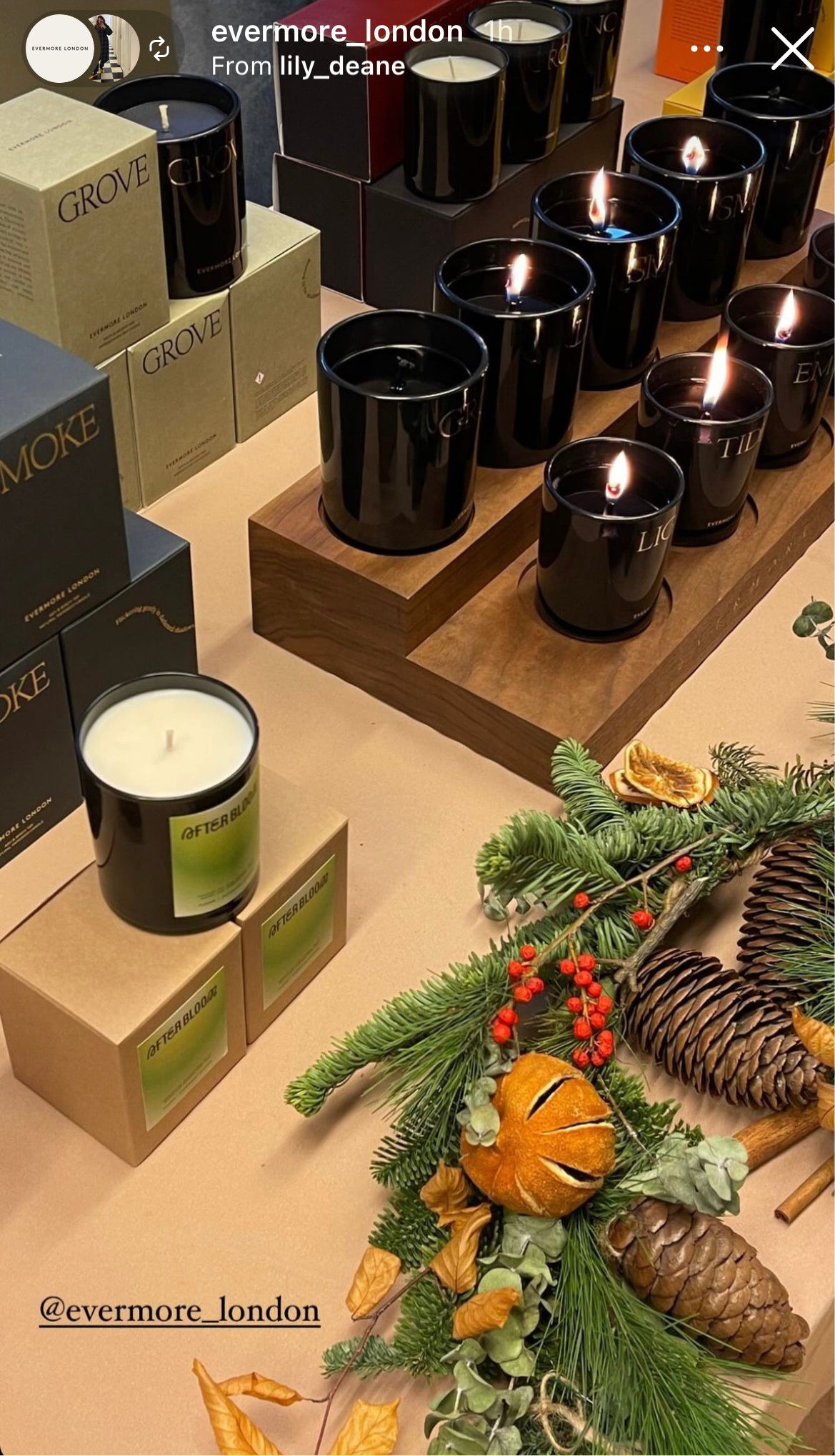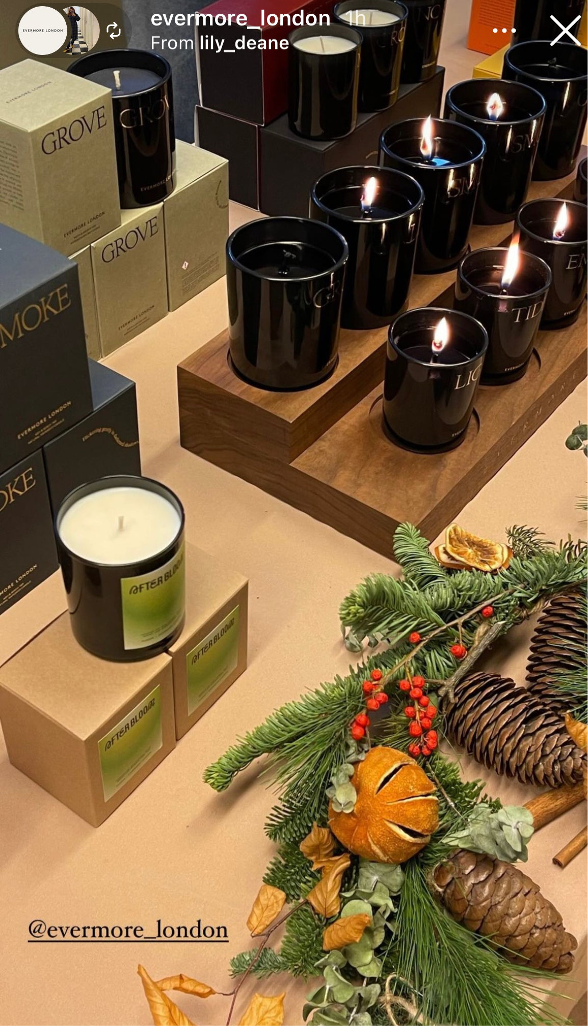 The foliage garlands include a variety of seasonal foliage and are adorned with natural decoration including dried fruit, pinecones and berries.
