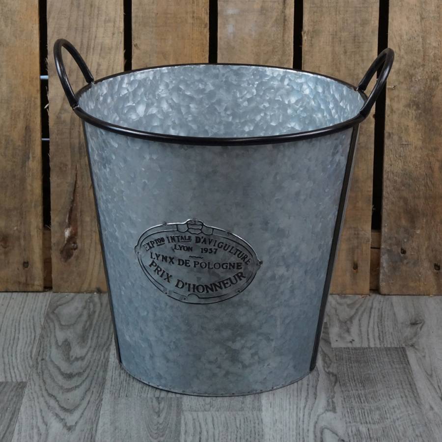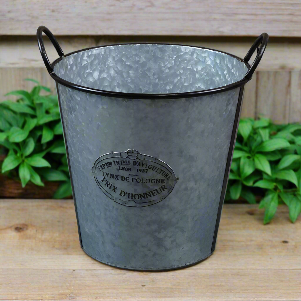 This Satchville & Co Zinc bucket with French metal emblem and two black stripes down each side, handles and drainage hole.. is the perfect container to brighten up any seasonal decor for the garden patio or balcony garden.