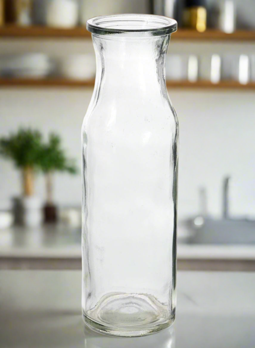 Introducing the Glass Milk Bottle Vase - a charming addition to any home. Crafted from high-quality glass, this vase brings a touch of nature indoors. Enjoy displaying your favorite flowers in this lovely botanical-inspired piece. Elevate your decor and embrace the beauty of nature with this elegantly retro vase.
