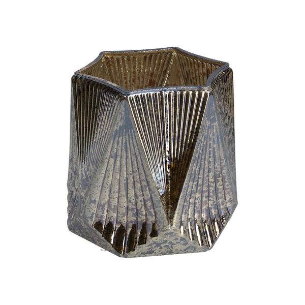 Antiqued Gold Ribbed Glass Deco Candle Holder from Gisela Graham