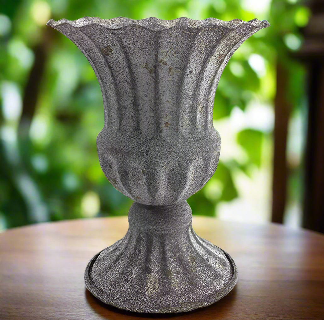 Wrought iron material, sturdy and durable, distressed grey stylish and creative for decor use.