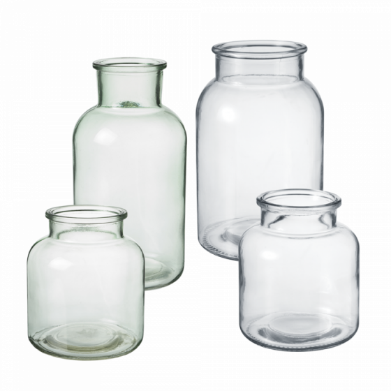 Classic sturdy clear glass jar vase, in two sizes. Green unavailable.