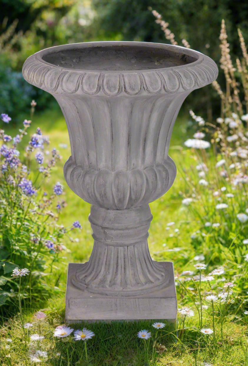 This Victoriana Garden Planter Urn is the perfect rustic-inspired piece to decorate your home, wedding venue or event. This charming fiberglass urn can be left empty or used to hold flowers, grasses and other greenery.