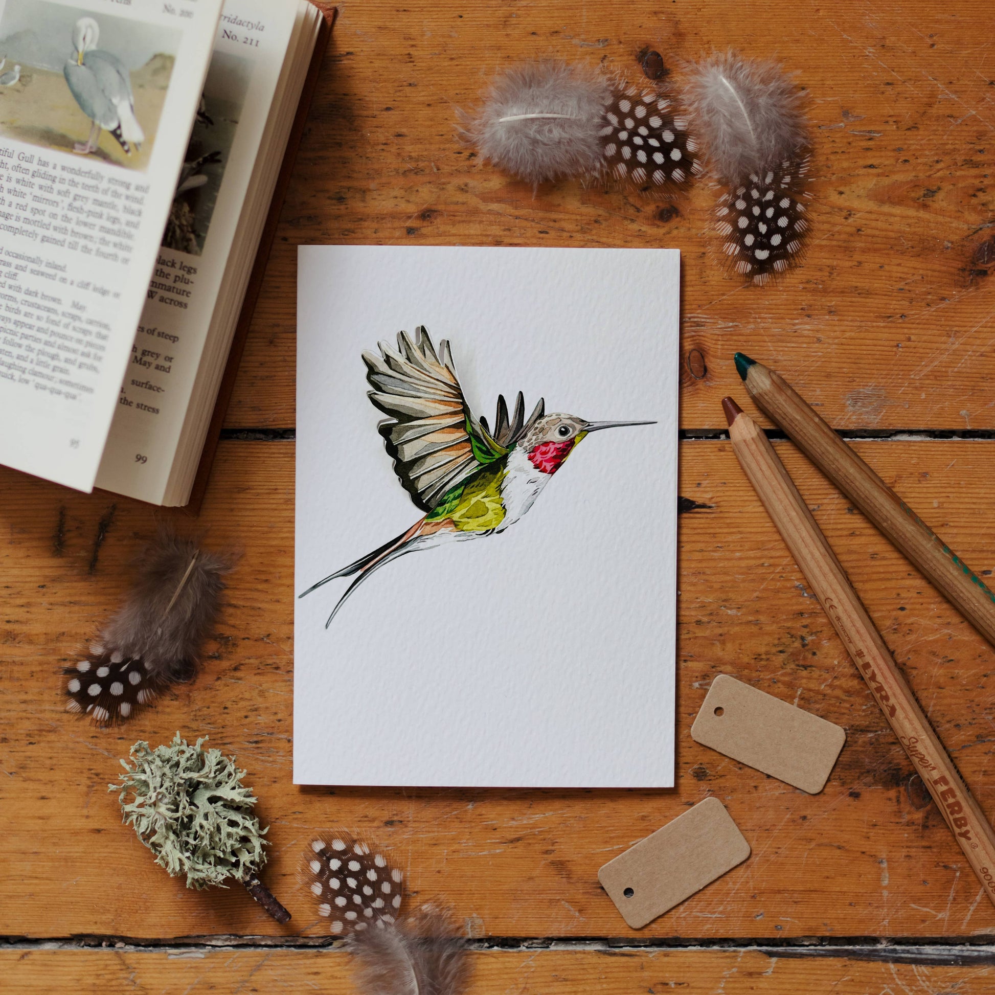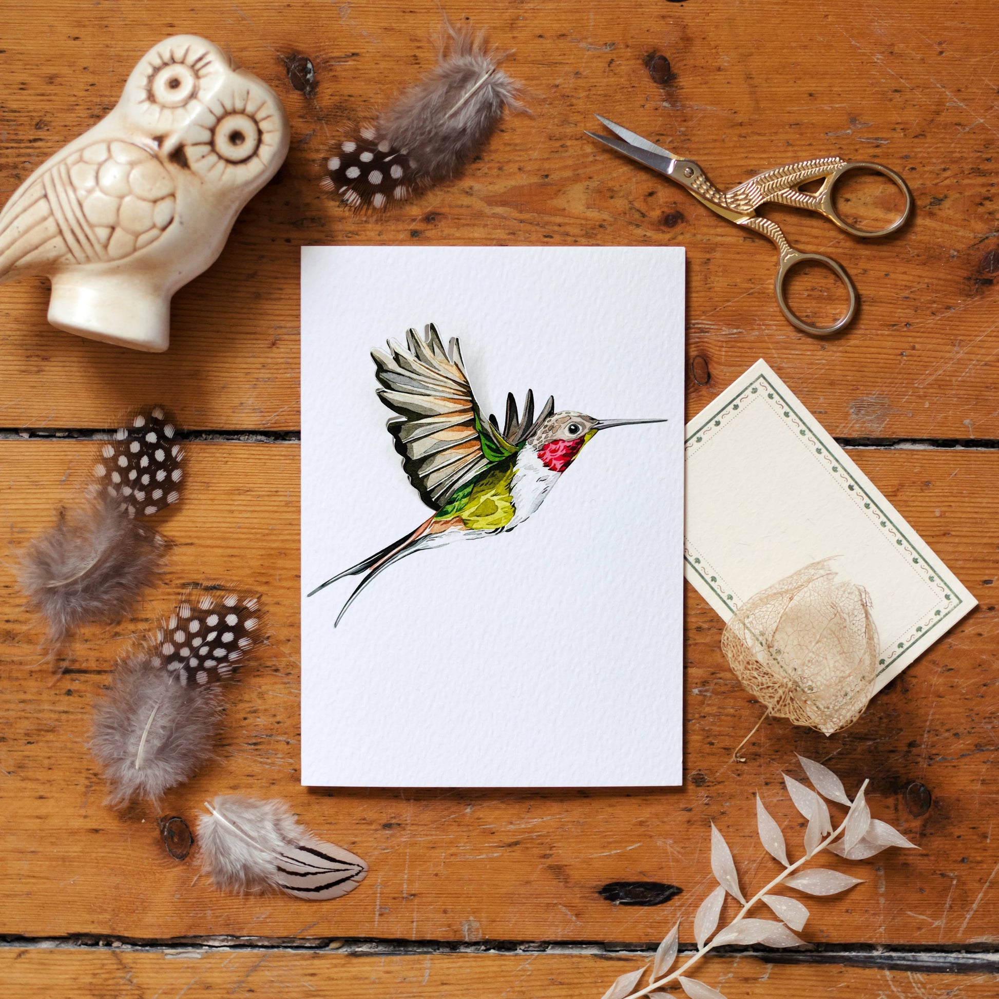 Hummingbird Pop Out Bird Watercolour Greetings Card