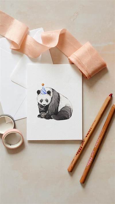 PartyHat Panda Birthday Watercolour Sustainable Greeting Card