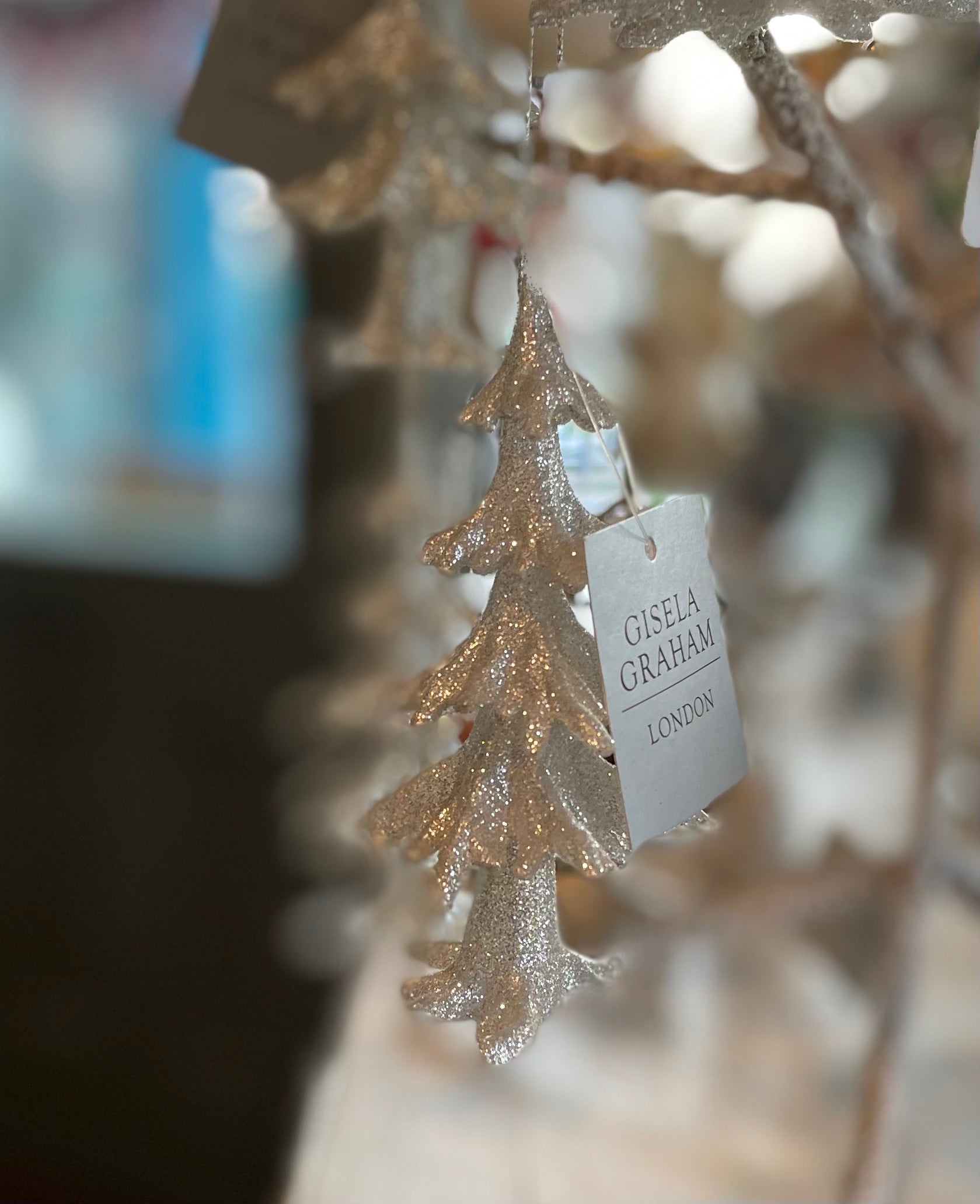 Bring some festive sparkle to your holiday decor with this Silver Glitter Tree Bauble from Gisela Graham. This stunning tree decoration will add a touch of elegance to your tree, as the silver glitter catches the light and creates a festive atmosphere.