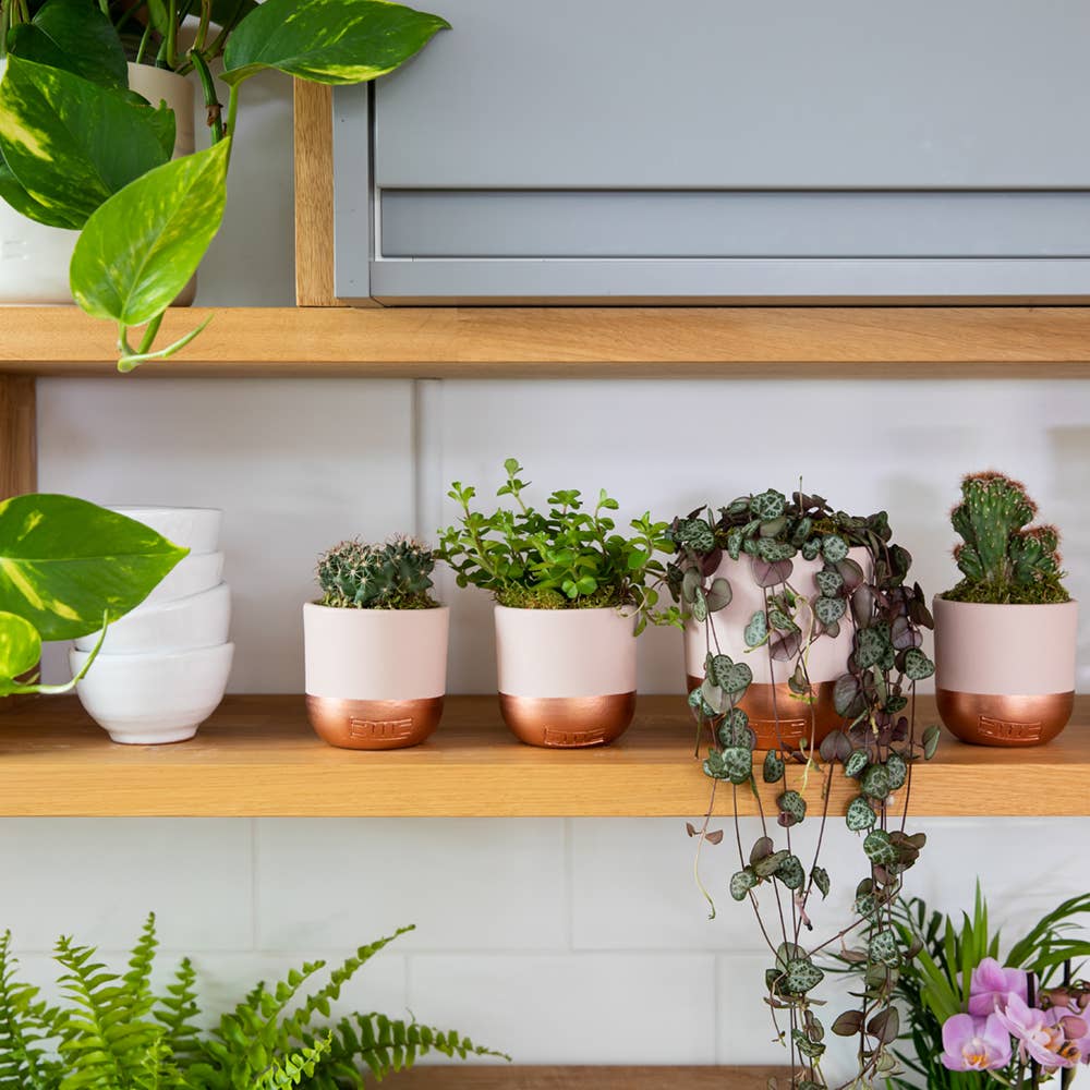 Perfect for hanging planters or shelves, this stylish indoor plant brings texture and movement to any space. Despite its dainty appearance, the String of Hearts is wonderfully low maintenance. It thrives in bright, indirect light (with a little direct sun if you like), and only needs watering once the soil has completely dried out. A must-have for plant lovers of all levels, this easy-care beauty rewards minimal effort with maximum impact.