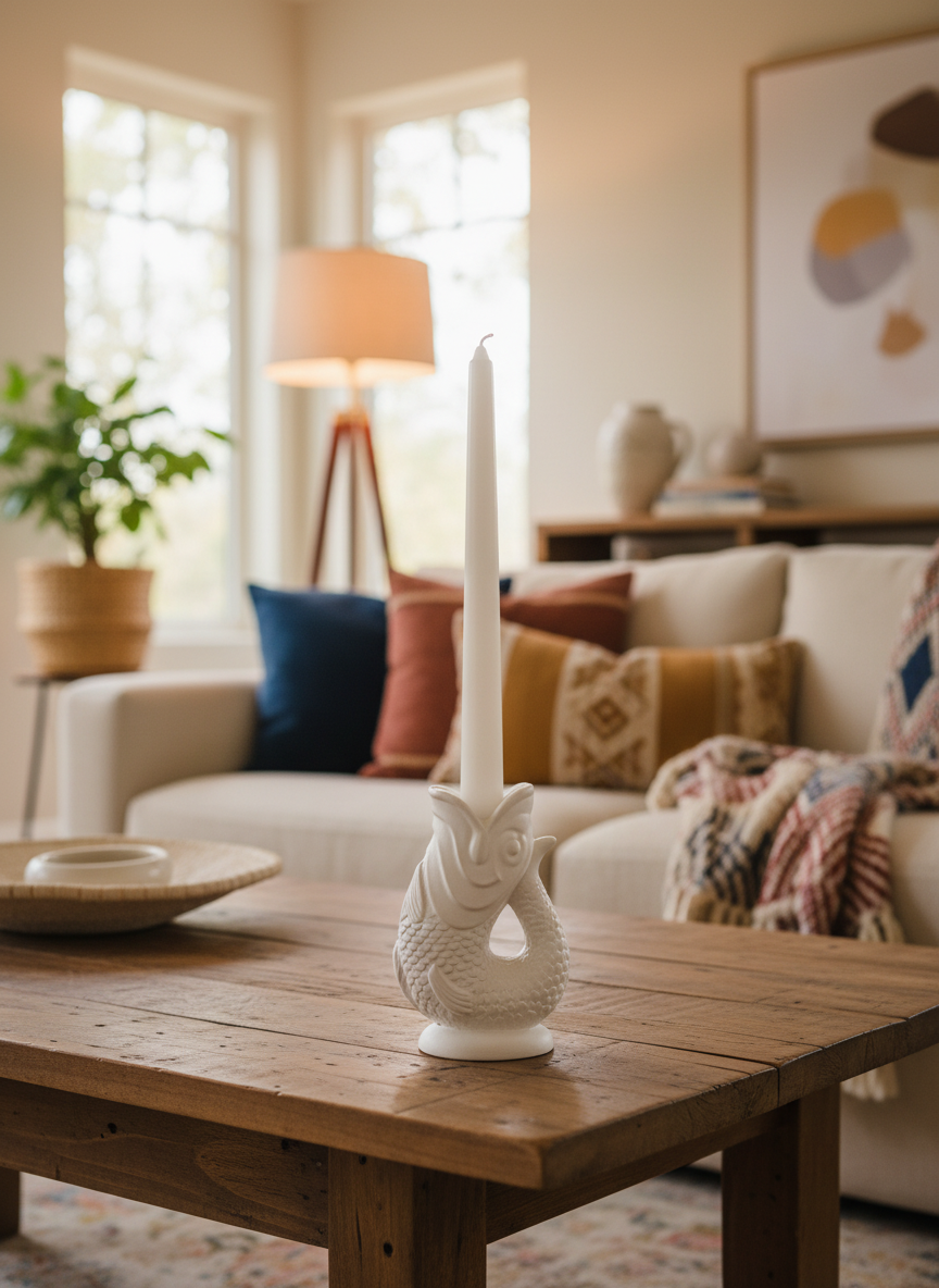 Add a touch of beauty to your home with our Lucky Singing Fish Taper Candle Holder.