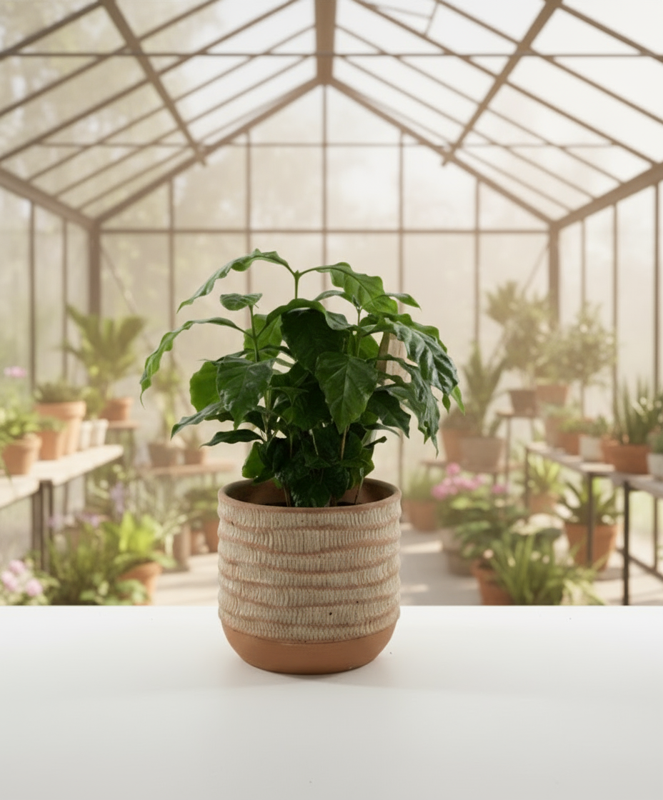 Coffee Arabica. This plant, known for its vibrant green leaves and fragrant white flowers, produces the finest quality coffee beans. Enjoy the pure, natural energizing properties of this botanical delight.