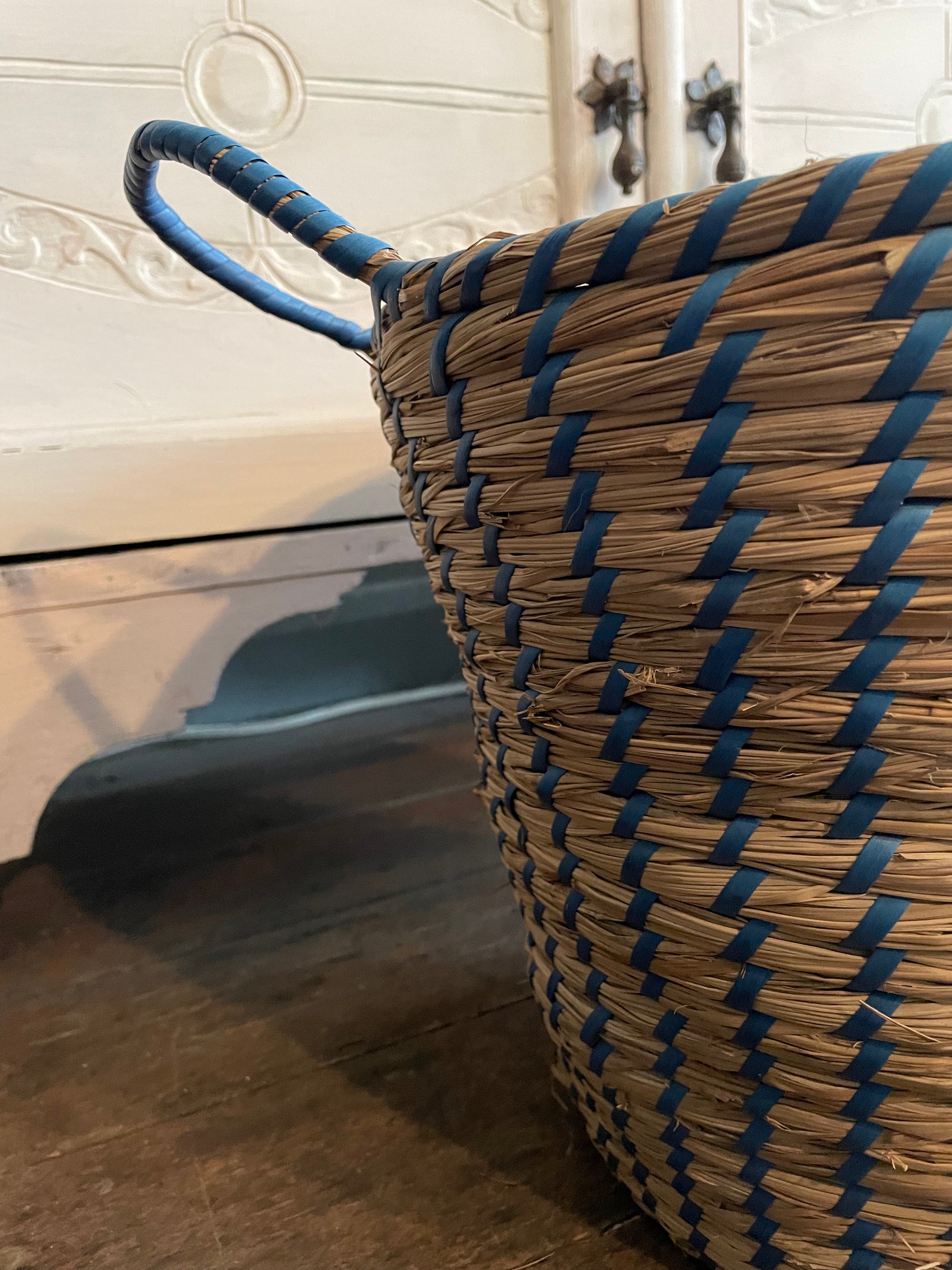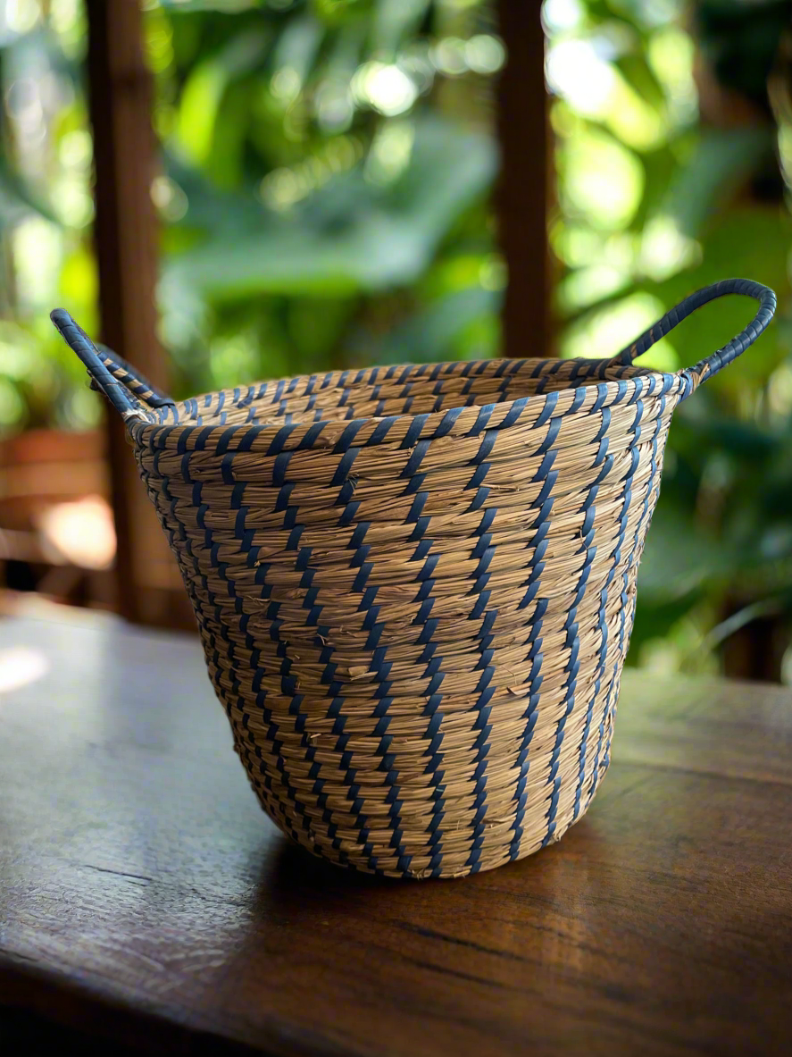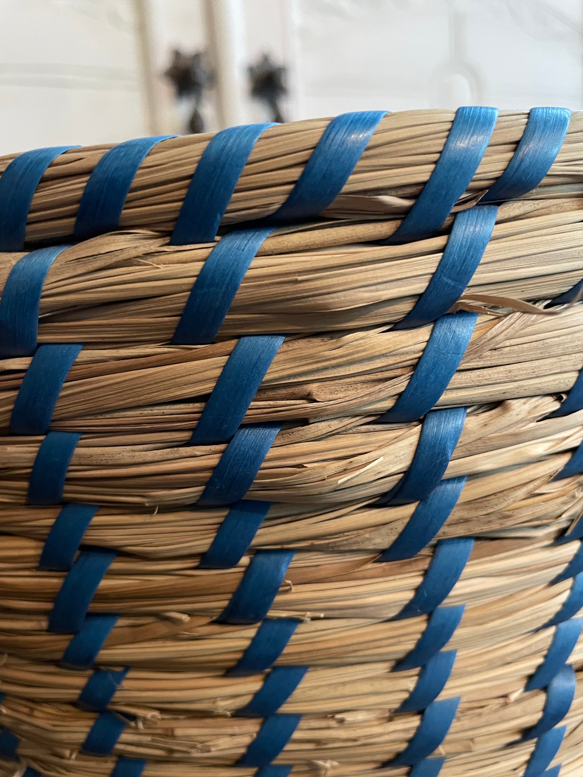Get organized in style with our Woven Basket! Made out of high-quality wicker, this basket features playful blue vinyl accents for a touch of colour. Perfect for storing all your essentials, this basket adds a pop of colour and personality to any space.