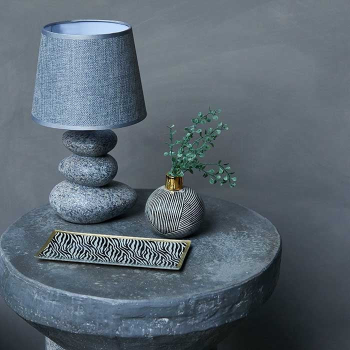 The graphic Zebra print with gold rim looks good on any surface.