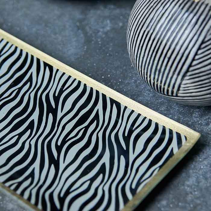 Zebra Print Glass Trinket Tray